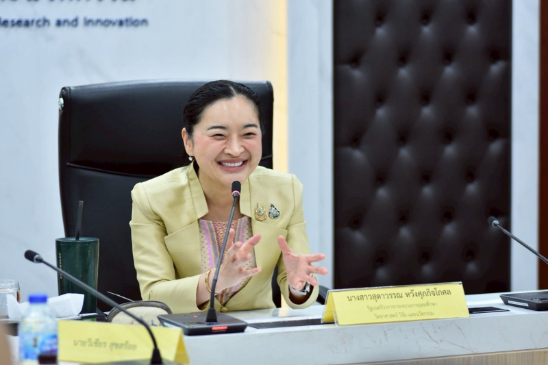 น.ส.สุดาวรรณ กล่าวอีกว่า ขณะที่ด้านที่สองคือการพัฒนาวิทยาศาสตร์ วิจัยและนวัตกรรม (ววน.) ซึ่งกระทรวง อว. มีกองทุนส่งเสริมการวิจัยและนวัตกรรม ที่ได้รับงบประมาณ 19,828 ล้านบาท ตนอยากเห็นว่า การวิจัย การพัฒนาเทคโนโลยีและนวัตกรรมเกิดผลกระทบ (Impact) จริงต่อทั้งภาคเศรษฐกิจและสังคม จึงมีนโยบาย ดังนี้ 1.ขอให้เน้นประสิทธิภาพในการบริหารกองทุน การจัดสรรทุน การจัดสรรงบประมาณไปยังหน่วยให้ทุนหรือ PMU และจาก PMU ไปยังมหาวิทยาลัยและนักวิจัย ต้องเป็นไปอย่างมีประสิทธิภาพ ครอบคลุมในทุกมิติทั้งในการพัฒนาเศรษฐกิจและสังคมในพื้นที่ ธุรกิจชุมชน SMEs อุตสาหกรรมสมัยใหม่ รวมถึงการทำวิจัยที่ส่งเสริมการสร้างองค์ความรู้สมัยใหม่ การพัฒนาเทคโนโลยีและนวัตกรรมขั้นสูง 2.การนำ ววน. ไปช่วยสนับสนุนภาคเกษตร ให้สามารถแข่งขันได้ โดยต้องมีการถ่ายทอดเทคโนโลยีองค์ความรู้ด้าน ววน. ไปช่วยเพิ่มผลผลิต ลดต้นทุน ยกระดับคุณภาพผลผลิต การนำเทคโนโลยีการเกษตรที่ทันสมัย สามารถควบคุมปัจจัยการผลิตต่างๆ ได้อย่างแม่นยำ เช่น การทำเกษตรอัจฉริยะ (Smart Farming) โดยเฉพาะในพืชเศรษฐกิจหลักของประเทศ เช่น ข้าว อ้อย มันสำปะหลัง ยางพารา เป็นต้น 3. นำ ววน. ไปช่วยเรื่องการป้องกันและบรรเทาสาธารณภัย เช่น PM 2.5 น้ำท่วม ภัยแล้ง เป็นต้น เพื่อพัฒนาและเร่งแก้ไขปัญหาทรัพยากรธรรมชาติ สิ่งแวดล้อม และภัยพิบัติ ในหลายๆ ด้าน และ 4. ส่งเสริมการวิจัยในการสร้างองค์ความรู้ใหม่ ส่งเสริมการสร้างอุตสาหกรรมสมัยใหม่ของประเทศ ทั้งจากการดึงดูดการลงทุนจากต่างประเทศ และการสร้าง Deep tech start-up ในประเทศ เช่น ด้านยานยนต์สมัยใหม่ อาหารแห่งอนาคต เศรษฐกิจอวกาศ (Space economy) AI เซมิคอนดักเตอร์ และ อิเล็กทรอนิกส์ชั้นสูง