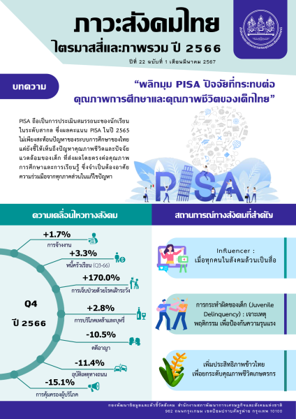 รายงานภาวะสังคมไทยไตรมาสสี่และภาพรวม ปี 2566 สำนักงานสภาพัฒนาการเศรษฐกิจและสังคมแห่งชาติ