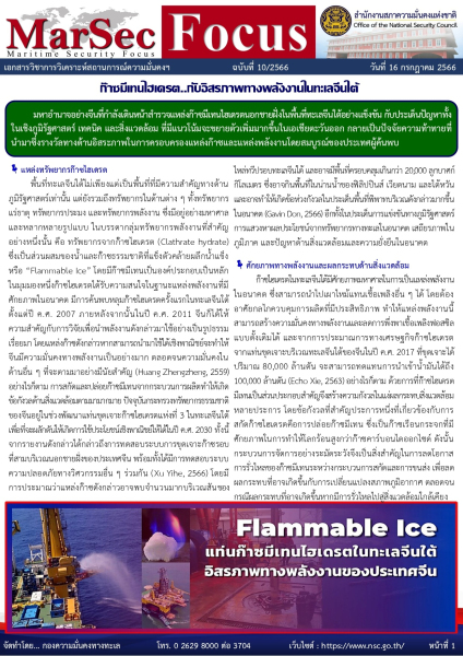 “ก๊าซมีเทนไฮเดรต..กับอิสรภาพทางพลังงานในทะเลจีนใต้” [MarSecFocus, ฉบับที่ 10/2566]