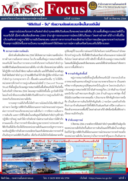 “ฟิลิปปินส์ – จีน” กับความขัดแย้งระลอกใหม่ในทะเลจีนใต้ [MarSecFocus, ฉบับที่ 12/2566]