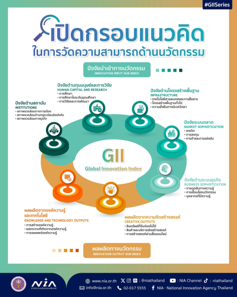 การวัดปัจจัยเหล่านี้มีเป้าหมายเพื่อสร้างความเข้าใจและเป็นแนวทางในการพัฒนานโยบายที่สนับสนุนนวัตกรรมในระดับประเทศและระดับโลก ซึ่งส่วนสำคัญที่จะส่งเสริมให้เกิดการพัฒนาได้ต้องมีการอำนวยความสะดวก สร้างความร่วมมือให้เกิดขึ้นแบบองค์รวมทั้งจากภาครัฐ เอกชน และภาคธุรกิจ คอนเทนต์ซีรีส์ GII หลังจากนี้ NIA จะพาทุกคนเข้าไปสำรวจการส่งเสริมศักยภาพของประเทศในแต่ละตัวชี้วัดกันว่ามีการดำเนินการอย่างไรเพื่อสอดรับกับตัวชี้วัดนั้นๆ บ้าง!