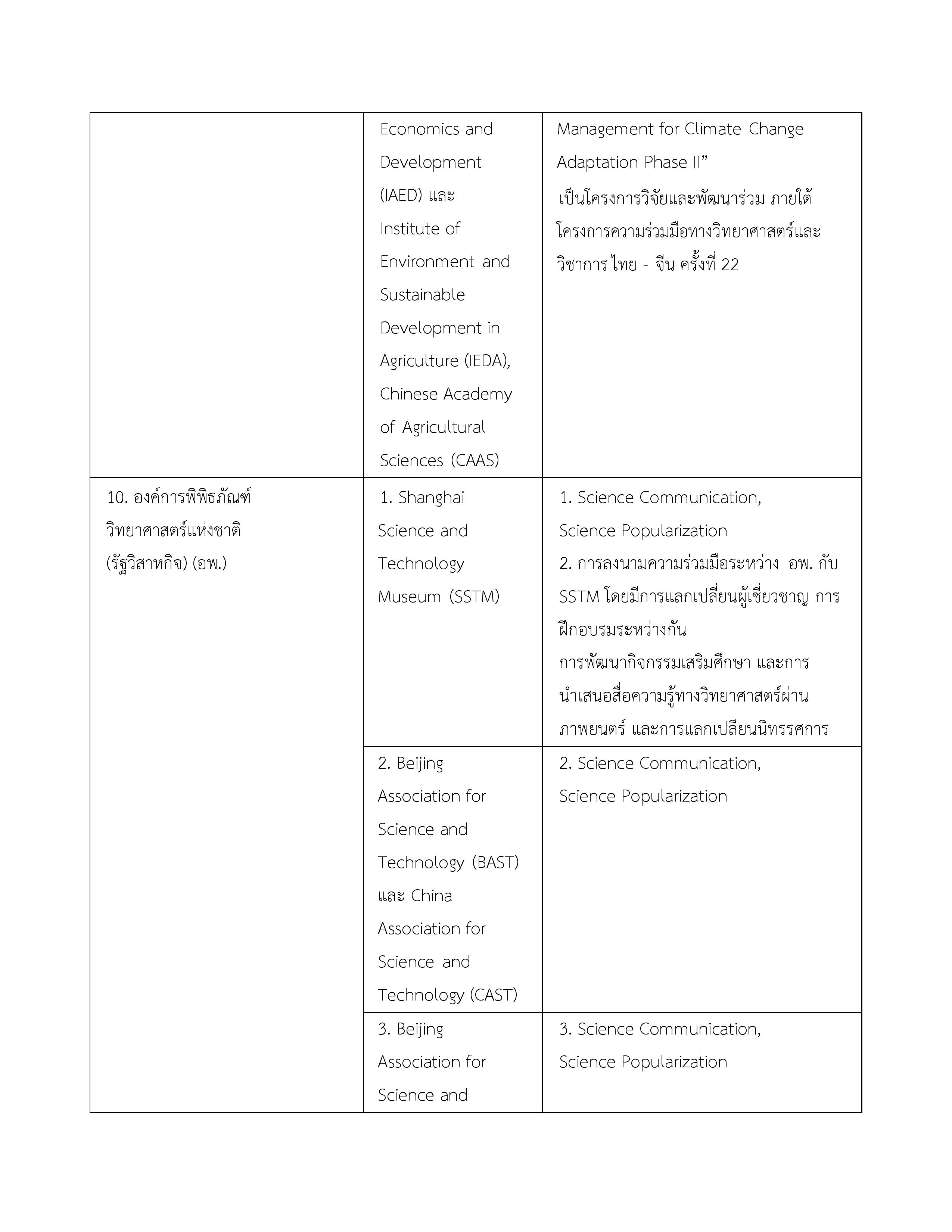 (2) สถานภาพความร่วมมือด้านวิทยาศาสตร์ เทคโนโลยี และนวัตกรรม ระหว่างหน่วยงานภายใต้กระทรวงวิทยาศาสตร์ และเทคโนโลยี กับหน่วยงานต่าง ๆ ของสาธารณรัฐประชาชนจีน