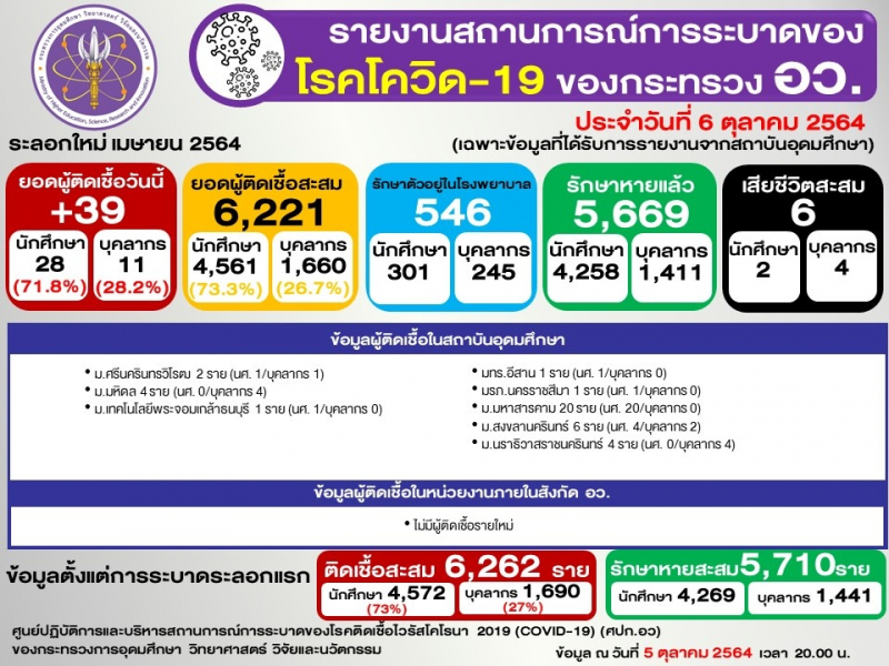 (ข้อมูล ณ 5 ตุลาคม 2564 เวลา 20.00