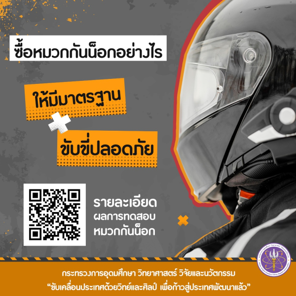 นอกจากนี้ แนะนำประชาชนหรือผู้ซื้อหมวกนิรภัย ให้สังเกตเครื่องหมาย มอก. ต้องมีคิวอาร์โค้ดควบคู่กัน ผู้ซื้อสามารถสแกนเข้าไปตรวจสอบมาตรฐานและข้อมูลการผลิตได้
