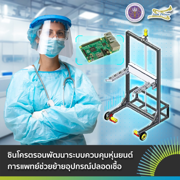 นักวิจัยและวิศวกรของสถาบันวิจัยแสงซินโครตรอน (องค์การมหาชน) จึงได้ร่วมกันพัฒนาเทคโนโลยีหุ่นยนต์เพื่อการประยุกต์ใช้ โดยได้เลือกพัฒนาหุ่นยนต์ทางการแพทย์ (Medical Robot) ประเภท Medical Transportation Robots* ที่มีจุดประสงค์หลักเพื่อช่วยในการขนส่งเครื่องมือและอุปกรณ์ทางการแพทย์ ยา และอาหาร รวมถึงป้องกันการติดเชื้อจากการลดการสัมผัสของมนุษย์ อีกทั้งมีคุณสมบัติเด่นตรงสามารถเคลื่อนที่ได้และช่วยลดต้นทุนในการขนส่งภายในอาคารได้อย่างมีประสิทธิภาพ
