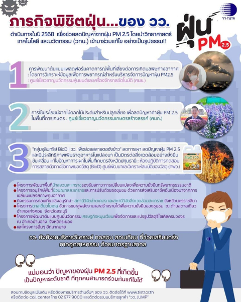 ภารกิจ ที่ สถาบันวิจัยวิทยาศาสตร์และเทคโนโลยีแห่งประเทศไทย หรือ วว. ดำเนินการในปี 2568 เพื่อช่วยลดปัญหาจากฝุ่น PM 2.5