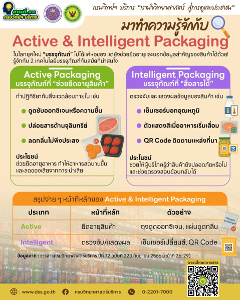 ทำงานกับสิ่งแวดล้อมภายใน เช่น ดูดซับออกซิเจน/ความชื้น, ปล่อยสารต้านจุลินทรีย์ หรือดักจับกลิ่นไม่พึงประสงค์ ประโยชน์เต็มๆ คือช่วยยืดอายุอาหาร ให้สดนานขึ้น และลดการเน่าเสีย!