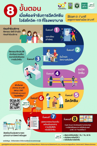 8 ขั้นตอน เมื่อต้องเข้ารับการฉีดวัคซีนไวรัสโควิด-19 ที่โรงพยาบาล
