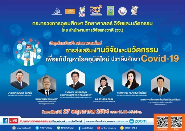 “วิจัยและนวัตกรรมนำไทยสู้ภัย Covid-19” ช่วงเสวนาภาคบ่าย 13.30-15.30 น.