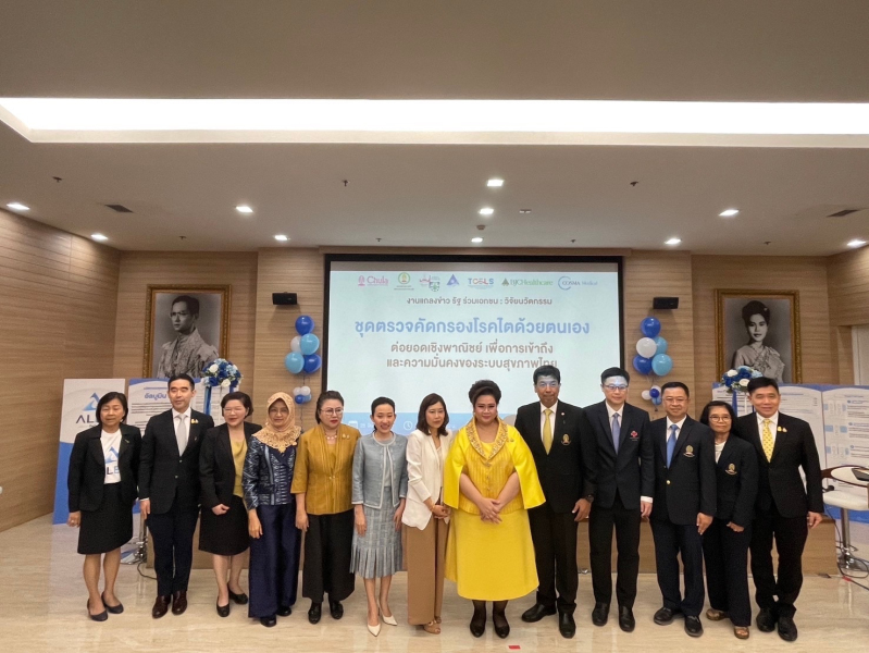นางสาวศุภมาส กล่าวว่า ทีมวิจัยไทยจากจุฬาลงกรณ์มหาวิทยาลัย สถาบันวิจัยระบบสาธารณสุข (สวรส.) และบริษัท บีเจซี เฮลท์แคร์ จำกัด ประสบความสำเร็จในการพัฒนาการ “ชุดทดสอบไมโครอัลบูมินในปัสสาวะ” เพื่อตรวจคัดกรองโรคไตเรื้อรังในระยะเริ่มต้น โดยได้รับความร่วมมือจากเครือข่ายวิจัยและพัฒนาในหลายภาคส่วน และได้มีการทดสอบประสิทธิภาพที่โรงพยาบาลจุฬาลงกรณ์ และขยายผลไปสู่การคัดกรองในระดับพื้นที่ที่มีขนาดใหญ่ขึ้น โดยชุดทดสอบไมโครอัลบูมินในปัสสาวะมีจุดเด่นคือ ผู้ใช้งานสามารถตรวจระดับการทำงานของไตเบื้องต้นได้ด้วยตนเอง ซึ่งง่ายต่อการใช้และการอ่านผล ทำให้เกิดประโยชน์ในแง่ของนโยบายเชิงรุกที่แพทย์และบุคลากรสาธารณสุขสามารถนำไปใช้ในการตรวจคัดกรองผู้ป่วยโรคไตในระยะเริ่มต้นได้ ซึ่งจะส่งผลให้ผู้ป่วยเกิดการตระหนักรู้และปรับพฤติกรรมการใช้ชีวิต เพื่อลดความเสี่ยงในการเกิดโรคไตเรื้อรัง