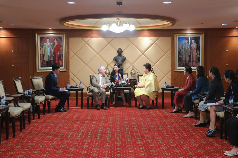 เมื่อวันที่ 3 เม.ย. นางสาวศุภมาส อิศรภักดี รัฐมนตรีว่าการกระทรวงการอุดมศึกษา วิทยาศาสตร์ วิจัยและนวัตกรรม (อว.) พร้อมด้วยนางสาวสุชาดา แทนทรัพย์ เลขานุการ รมว.อว. และผู้แทนจากหน่วยงานในสังกัดกระทรวง อว. ร่วมหารือกับนายฌ็อง-โกลด ปวงเบิฟ (Mr. Jean-Claude Poimbœuf) เอกอัครราชทูตฝรั่งเศสประจำประเทศไทย ณ ห้องรับรองพระจอมเกล้า สป.อว.