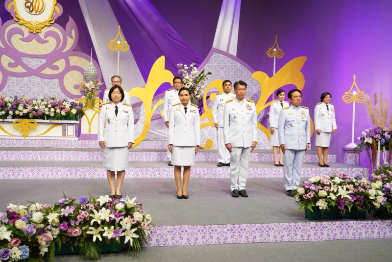 เมื่อวันที่ 27 พ.ค. นางสาวศุภมาส อิศรภักดี รัฐมนตรีว่าการกระทรวงการอุดมศึกษา วิทยาศาสตร์ วิจัยและนวัตกรรม (อว.) พร้อมด้วย นายเพิ่มสุข สัจจาภิวัฒน์ ปลัดกระทรวง อว. นำคณะผู้บริหารระดับสูงของกระทรวง อว. บันทึกเทปถวายพระพร เนื่องในโอกาสมหามงคลเฉลิมพระชนมพรรษา สมเด็จพระนางเจ้าสุทิดา พัชรสุธาพิมลลักษณ พระบรมราชินี 3 มิถุนายน 2567 เพื่อแสดงความจงรักภักดีและน้อมสำนึกในพระมหากรุณาธิคุณที่ทรงมีต่อพสกนิกรชาวไทย ณ สถานีวิทยุโทรทัศน์แห่งประเทศไทย (NBT) กรุงเทพมหานคร