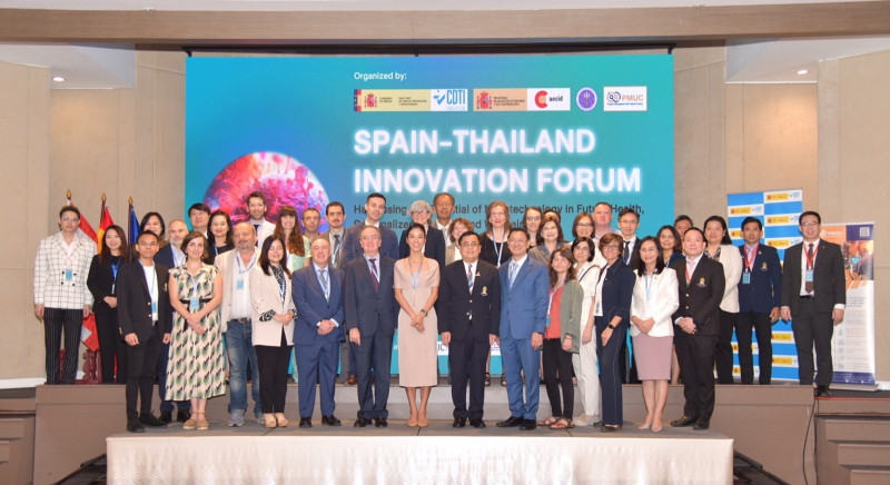 เมื่อวันที่ 12 ก.ค. น.ส.สุชาดา แทนทรัพย์ เลขานุการรัฐมนตรีว่าการกระทรวงการอุดมศึกษา วิทยาศาสตร์ วิจัยและนวัตกรรม (อว.) เป็นประธานเปิดงาน SPAIN-THAILAND INNOVATION FORUM ภายใต้หัวข้อ "Harnessing the Potential of Nanotechnology : Future Health, Personalized Medicine & Wellbeing" จัดโดย กระทรวงการอุดมศึกษา วิทยาศาสตร์ วิจัยและนวัตกรรม โดย หน่วยบริหารและจัดการทุนด้านการเพิ่มความสามารถในการแข่งขันของประเทศ (บพข.) ร่วมกับสถานเอกอัครราชทูตสเปนประจำประเทศไทย และ CDTI-Ministry of Science, Innovation and Universities ประเทศสเปน โดยมี นายเฟลิเป เด ลา โมเรนา กาซาโด (H.E. Mr. Felipe de la Morena Casado), Ambassador of Spain to Thailand, นายคาลอส เด ลา ครูซ (Mr.Carlos de la Cruz), Director of Technology and Internationalisation of the Centre for Technologica Development and Innovation, Ministry of Science, Innovation and Universities, Spain เข้าร่วม ณ ห้องบอลรูม A ชั้น 1 โรงแรมแมนดาริน กรุงเทพฯ