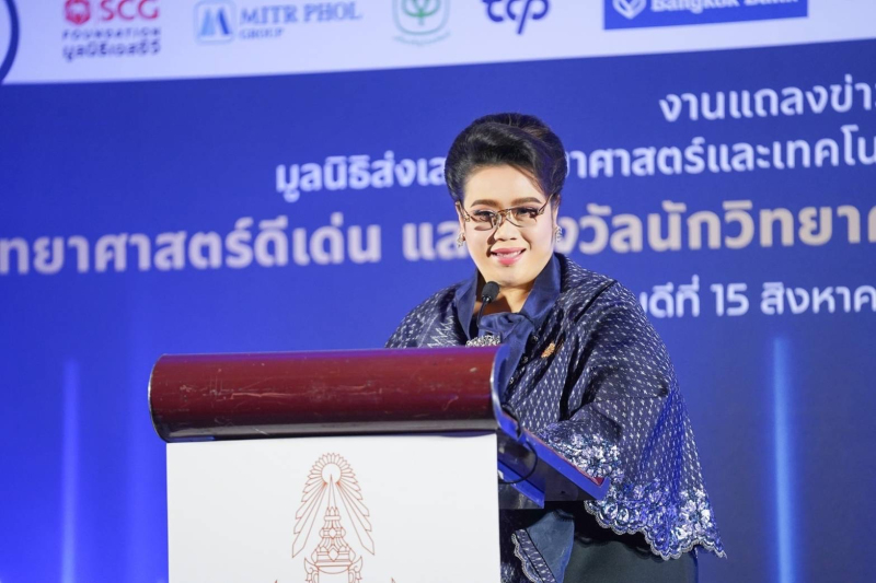 เมื่อวันที่ 15 ส.ค. นางสาวศุภมาส อิศรภักดี รัฐมนตรีว่าการกระทรวงการอุดมศึกษา วิทยาศาสตร์ วิจัยและนวัตกรรม (อว.) เป็นประธานการแถลงข่าวพร้อมกล่าวแสดงความยินดี และมอบโล่รางวัลให้แก่ผู้ที่ได้รับรางวัลนักวิทยาศาสตร์ดีเด่นและรางวัลนักวิทยาศาสตร์รุ่นใหม่ ประจำปี 2567 โดยมี ศ.ดร.ยงยุทธ ยุทธวงศ์ อดีตรองนายกรัฐมนตรี ศ.ดร.จำรัส ลิ้มตระกูล ประธานคณะกรรมการรางวัลนักวิทยาศาสตร์ดีเด่น นางสาวสุชาดา แทนทรัพย์ เลขานุการ รมว.อว. พญ.เพชรดาว โต๊ะมีนา ที่ปรึกษา รมว.อว. และผู้ที่ได้รับรางวัล เข้าร่วมงาน ณ โรงแรมเซ็นทารา แกรนด์ แอท เซ็นทรัลพลาซา ลาดพร้าว กรุงเทพฯ