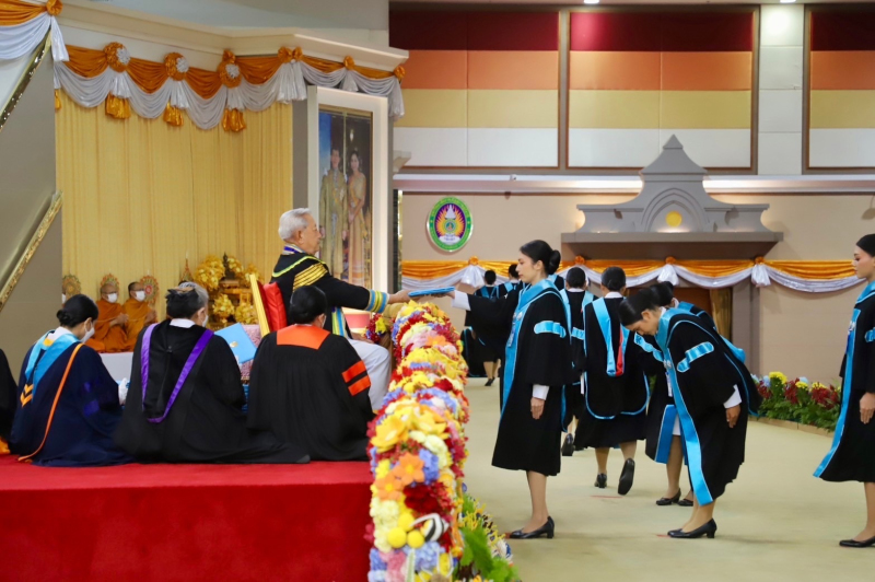 วันที่ 5 กันยายน 2567 พระบาทสมเด็จพระเจ้าอยู่หัว ทรงพระกรุณาโปรดเกล้าฯ ให้ พล.อ.สุรยุทธ์ จุลานนท์ ประธานองคมนตรี เป็นผู้แทนพระองค์ พระราชทานปริญญาบัตรแก่บัณฑิตผู้สำเร็จการศึกษาจากมหาวิทยาลัยราชภัฏเขตภาคใต้ มหาวิทยาลัยราชภัฏสุราษฎร์ธานี และ มหาวิทยาลัยราชภัฏสงขลา ประจำปีการศึกษา 2565 รอบที่ 1 เวลา 10.30 น. มหาวิทยาลัยราชภัฏสุราษฎร์ธานี มีผู้เข้ารับพระราชทานปริญญาบัตร 2,118 คน รอบที่ 2 เวลา 14.00 น. มหาวิทยาลัยราชภัฏสงขลา มีผู้เข้ารับพระราชทานปริญญาบัตร 1,039 คน รวมทั้งสิ้น 3,157 คน ในการนี้ นางสาวศุภมาส อิศรภักดี รัฐมนตรีว่าการกระทรวงการอุดมศึกษา วิทยาศาสตร์ วิจัยและนวัตกรรม พร้อมด้วย นายเพิ่มสุข สัจจาภิวัฒน์ ปลัดกระทรวง อว. ศ.ดร.ศุภชัย ปทุมนากุล รองปลัดกระทรวง อว. และผู้บริหารกระทรวง อว. เฝ้ารับเสด็จ ณ มหาวิทยาลัยราชภัฏสุราษฎร์ธานี จ.สุราษฎร์ธานี