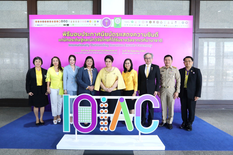 เมื่อวันที่ 16 ก.ย. 67 นางสาวศุภมาส อิศรภักดี รัฐมนตรีว่าการกระทรวงการอุดมศึกษา วิทยาศาสตร์ วิจัยและนวัตกรรม (อว.) เป็นประธานในพิธีมอบประกาศนียบัตรและกล่าวแสดงความยินดีแก่นักประดิษฐ์และนักวิจัยไทยที่ได้รับรางวัลจากเวทีนานาชาติ โดยมี ดร.วิภารัตน์ ดีอ่อง ผู้อํานวยการสำนักงานการวิจัยแห่งชาติ (วช.) เป็นผู้กล่าวรายงาน พร้อมด้วยคณะผู้บริหาร นักประดิษฐ์และนักวิจัย เข้าร่วม ณ ห้องมัฆวานรังสรรค์ ชั้น 3 สโมสรทหารบก วิภาวดี