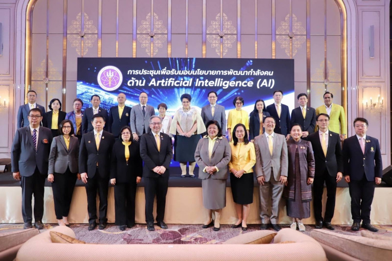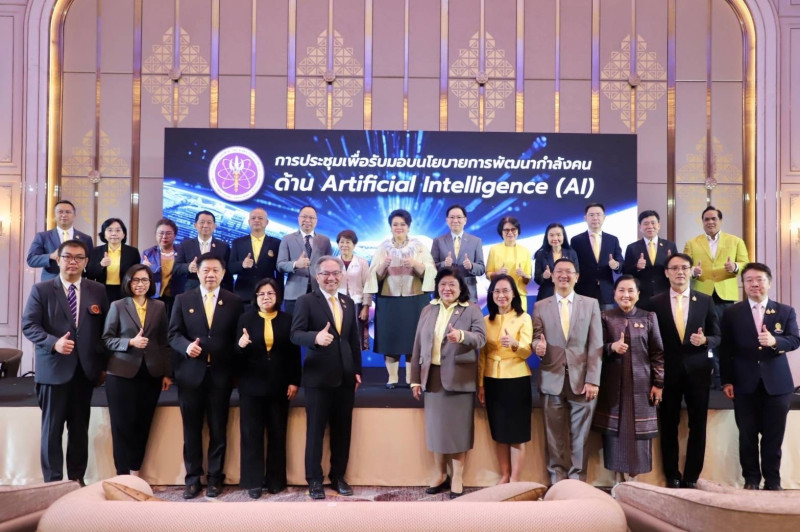 ต่อมาผู้แทนที่ประชุมอธิการบดี 4 แห่ง ได้แสดงเจตนารมณ์ในการขับเคลื่อนนโยบายด้านการพัฒนากำลังคนด้าน AI ทั้งนี้ น.ส.ศุภมาส ให้สัมภาษณ์ว่า ขณะนี้หลายมหาวิทยาลัยได้มีการจัดการเรียนการสอนด้าน AI ให้กับนักศึกษามหาวิทยาลัยแล้ว เช่น มหาวิทยาลัยเทคโนโลยีราชมงคลล้านนา อธิการบดีเล่าให้ฟังว่า เด็กที่เรียนจบไปไม่พอเพียงกับความต้องการ มีบริษัทเอกชนมาแย่งตัวกันเป็นจำนวนมาก ดังนั้น กระทรวง อว.ได้ตั้งเป้าว่าภายใน 3 ปีนี้จะผลิตบุคลากรด้าน AI ให้ได้ 30,000 คนใน 3 ระดับ คือ ระดับที่ 1 ผู้เชี่ยวชาญด้าน AI (AI Professional) เป็นบุคลากร AI ที่เก่งมาก ซึ่งส่วนหนึ่งจะมาเป็นอาจารย์ในมหาวิทยาลัยด้วย ระดับที่ 2 วิศวกร AI (AI Engineer) ที่เป็นทั้งผู้ใช้ AI และสร้าง AI และระดับที่ 3 บุคลากรที่มีทักษะ AI เบื้องต้น (AI Biginners) คือเป็นเหมือนพวกเราคนทั่วไปที่สามารถใช้เป็นและเริ่มเรียนรู้ที่จะสร้าง AI ได้