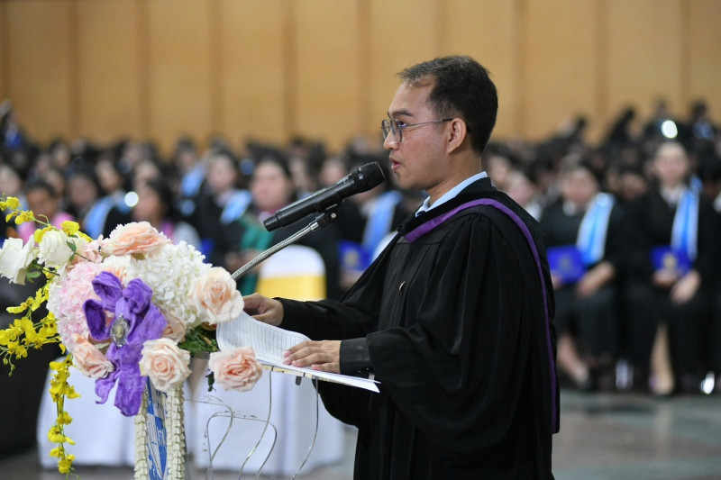 รมว.อว. กล่าวต่อว่า ในวันนี้ นักเรียน นักศึกษาได้สำเร็จการศึกษา และพร้อมก้าวสู่เส้นทางใหม่ในชีวิต ตนขอฝากข้อคิดสำคัญไว้ คือการนำความรู้ทั้งด้านวิชาการและวิชาชีพที่ได้รับมาปรับใช้ให้เกิดประโยชน์สูงสุด พร้อมทั้งควรหมั่นฝึกฝนพัฒนาตนเองอยู่เสมอ โดยน้อมนำพระบรมราโชวาทของพระบาทสมเด็จพระบรมชนกาธิเบศร มหาภูมิพลอดุลยเดชมหาราช บรมนาถบพิตร ที่ได้พระรารทานไว้ว่า “...ความรู้ที่จะศึกษามีอยู่สามส่วน คือ ความรู้วิชาการ ความรู้ปฏิบัติการ และความคิดอ่านตามเหตุผลความเป็นจริง ซึ่งแต่ละคนควรเรียนรู้ให้ครบ เพื่อสามารถนำไปใช้ประกอบกิจการงาน และแก้ปัญหาทั้งปวงได้อย่างมีประสิทธิภาพ...” เมื่อผู้สำเร็จการศึกษาทุกคนปฏิบัติตามแนวทางนี้ ตนเชื่อมั่นว่าจะสามารถนำไปสู่ความสำเร็จและความเจริญรุ่งเรืองในอนาคต