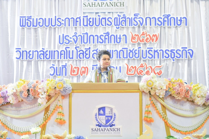 เมื่อวันที่ 23 มี.ค. นางสาวศุภมาส อิศรภักดี รัฐมนตรีว่าการกระทรวงการอุดมศึกษา วิทยาศาสตรื วิจัยและนวัตกรรม (อว.) เป็นประธานในพิธีมอบประกาศนียบัตรผู้สำเร็จการศึกษาจากวิทยาลัยเทคโนโลยีสหะพาณิชย์บริหารธุรกิจ ประจำปีการศึกษา 2567 ณ อิมพีเรียล คอนเวนชัน ฮอล์ เวิลด์ สำโรง โดยในปีนี้มีผู้สำเร็จการศึกษาระดับประกาศนียบัตรวิชาชีพ (ปวช.) จำนวน 195 คน และระดับประกาศนียบัตรวิชาชีพชั้นสูง (ปวส.) จำนวน 612 คน รวมทั้งสิ้น 807 คน