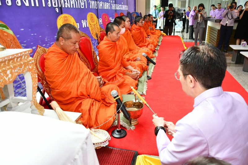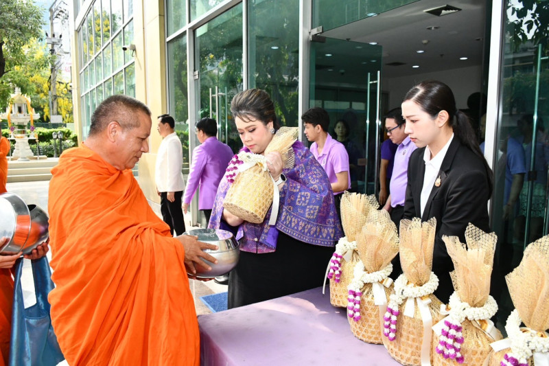 เมื่อวันที่ 2 พ.ค. 68 ช่วงเช้า กระทรวงการอุดมศึกษา วิทยาศาสตร์ วิจัยและนวัตกรรม (อว.) จัดพิธีทำบุญตักบาตรอาหารแห้งและถวายภัตตาหารเช้าแด่พระสงฆ์ จำนวน 10 รูป จากวัดเบญจมบพิตรดุสิตวนารามราชวรวิหาร เนื่องในวันคล้ายวันสถาปนากระทรวง อว. ครบรอบ 6 ปี โดยมี น.ส.ศุภมาส อิศรภักดี รัฐมนตรีว่าการกระทรวง อว. ศ.ดร.ศุภชัย ปทุมนากุล ปลัดกระทรวง นางสาววราภรณ์ รุ่งตระการ รองปลัดกระทรวง นายวันนี นนท์ศิริ ผู้ตรวจราชการกระทรวง ดร.พันธุ์เพิ่มศักดิ์ อารุณี ผู้ช่วยปลัดกระทรวง พร้อมด้วยผู้บริหารหน่วยงาน ข้าราชการ พนักงาน และเจ้าหน้าที่ เข้าร่วมพิธี ณ ห้องโถง ชั้น 1 อาคารอุดมศึกษา 2 สป.อว. (ศรีอยุธยา)