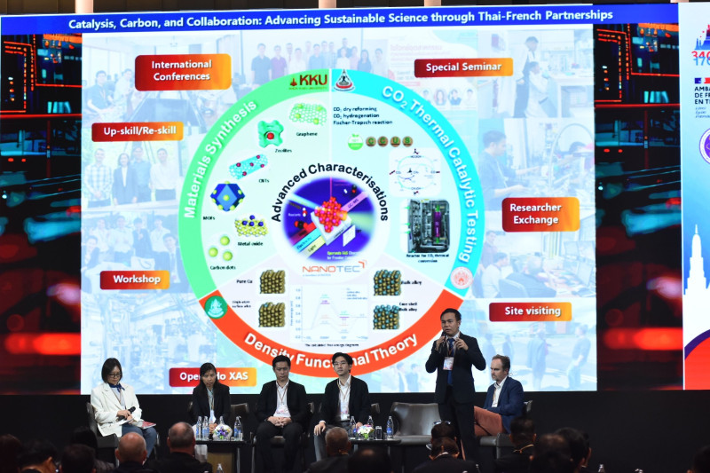 ภายในงาน “Celebration of the 24th Birthday of the PHC SIAM Programme and Exploring Collaboration on Science, Technology, and Innovation” ได้เปิดเวทีให้ผู้เข้าร่วมได้แลกเปลี่ยนวิสัยทัศน์และแนวทางความร่วมมือในอนาคตด้านวิทยาศาสตร์ เทคโนโลยี และนวัตกรรม ผ่านกิจกรรม ได้แก่ ปาฐกถาพิเศษเนื่องในโอกาสครบรอบ 24 ปี โครงการ PHC SIAM โดยศาสตราจารย์วิชัย ริ้วตระกูล ประธานคณะกรรมการพิจารณาโครงการวิจัยร่วมภายใต้ความร่วมมือด้านอุดมศึกษาและการวิจัยระหว่างไทย-ฝรั่งเศส (ฝ่ายไทย) และ Prof. Christophe Delacourt, Head of International Cooperation Programme กระทรวงการอุดมศึกษาและการวิจัยแห่งสาธารณรัฐฝรั่งเศส การนำเสนอเทรนด์เทคโนโลยีของประเทศไทย เช่น นาโนเทคโนโลยีเพื่อพลังงานและสิ่งแวดล้อม นวัตกรรมการเพาะปลูกด้วยโรงงานผลิตพืช การวิจัยด้านพลาสมาสำหรับอุตสาหกรรมพลังงาน และเทคโนโลยีแสงซินโครตรอน ซึ่งเป็นการเปิดโอกาสทิศทางความร่วมมือใหม่ ที่เป็นไปได้ในสาขาเทคโนโลยีขั้นสูง พร้อมสะท้อนถึงความพร้อมของภาควิจัยและภาคเอกชนไทยในการขยายความร่วมมือกับฝรั่งเศสในอนาคตอันใกล้ นอกจากนี้ยังมีการนำเสนอโครงการวิจัยภายใต้ PHC SIAM ที่โดดเด่นโดยนักวิจัยไทย-ฝรั่งเศส การเสวนาเกี่ยวกับแนวทางการพัฒนาข้อเสนอโครงการและเตรียมความพร้อมให้ผู้สนใจเสนอโครงการภายใต้ PHC SIAM และการเสวนาเกี่ยวกับการขอรับทุนสนับสนุนจากแหล่งทุนไทยและฝรั่งเศสเพื่อต่อยอดจากโครงการ PHC SIAM ตลอดจนกิจกรรมคู่ขนาน ได้แก่ การสัมมนาหัวข้อ “Nanoceutical Technology in Cosmetics & Herbal Fragrances” ซึ่งร่วมจัดโดยสำนักงานพัฒนาวิทยาศาสตร์และเทคโนโลยีแห่งชาติ และการสัมมนาหัวข้อ “Nuclear Technology for Decarbonisation Pathway” ซึ่งร่วมจัดโดยสถาบันเทคโนโลยีนิวเคลียร์แห่งชาติ (องค์การมหาชน)