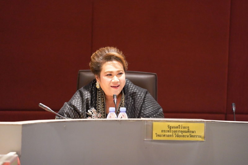 รมว.อว. กล่าวต่อว่า ในด้านการวิจัยและนวัตกรรม กระทรวง อว. มุ่งเน้นงานวิจัยและนวัตกรรมที่เป็นประเด็นสำคัญของประเทศ ได้แก่ Go Green, พอเพียง, ความยั่งยืน (Sustainabilty), ความเป็นกลางทางคาร์บอน (Carbon Neutrality) , พลังงานสะอาด, เป็นมิตรกับสิ่งแวดล้อม, เศรษฐกิจชีวภาพ ,เศรษฐกิจสร้างสรรค์ และเทคโนโลยีปัญญาประดิษฐ์ (AI) นอกจากนี้ ยังต้องการผลักดันให้ประชาชนสามารถเข้าถึง และได้รับประโยชน์จากงานวิจัยได้ โดยเปลี่ยนจากงาน “งานวิจัยขึ้นหิ้ง” เป็น “งานวิจัยขึ้นห้าง” เพื่อช่วยขับเคลื่อนเศรษฐกิจ แก้ไขปัญหาสำคัญของประเทศ รวมถึงตอบโจทย์ต่อความต้องการของประเทศต่อไปได้