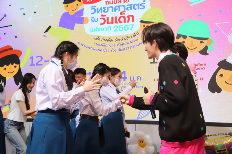 เมื่อวันที่ 13 ม.ค. น.ส.ศุภมาส อิศรภักดี รมว.การอุดมศึกษา วิทยาศาสตร์ วิจัยและนวัตกรรม (อว.) เป็นประธานเปิดงานถนนสายวิทยาศาสตร์ รับวันเด็กแห่งชาติ ประจำปี 2567 ที่กระทรวง อว.ถนนโยธี เป็นวันที่สอง โดยไฮไลต์ของงานคือการนำ 5 ศิลปินดาราวัยรุ่นชื่อดัง ได้แก่ มอส - กฤติเดช ภูภัทรธรา, ดล - นภดล ทิพวัฒน์, เลโอนาร์โด ซุนโด, องศา - ธีธัช คุ้มเมือง และ ทาฆิ อ่องลออ รวมทั้งดารานักแสดง“เจนิส” เจณิสตา พรหมผดุงชีพพร้อมนักปั้นศิลปิน เอ - ศุภชัย ศรีวิจิตร มาร่วมงาน ท่ามกลางเสียงกรี๊ดกร๊าดของผู้เข้าชมงานกว่าพันคน โดยศิลปินทั้ง 5 คน ได้เปิดการแสดงมินิคอนเสิร์ตเพลง “เรื่องเล็กเรื่องสำคัญ” และเพลง “จดหมาย” ที่ห้องแถลงข่าว ชั้น 1 อาคารพระจอมเกล้า สำนักงานปลัด อว.โดยได้รับความสนใจจากเด็ก ๆ และผู้ปกครองเป็นอย่างมาก จนผู้เข้าชมล้นออกมานอกห้องจัดแสดง โดยทั้งเด็กและผู้ปกครองได้ร่วมกันทั้งร้องและเต้นกันอย่างสนุกสนาน นอกจากนี้ น.ส.ศุภมาสพร้อมทั้งผู้บริหาร อว. และเหล่าศิลปินดารา รวมไปถึงเด็กๆ พ่อแม่ผู้ปกครอง ยังได้ร่วมกันร้องเพลง “ทรงอย่างแบด” เพลงยอดฮิตวัยฟันน้ำนม ก่อนทิ้งท้ายมินิคอนเสิร์ตด้วยการเล่นเกมแจกจักรยาน สกู๊ตเตอร์ เซิร์ฟสเก็ต ตุ๊กตา อุปกรณ์การเรียน และอื่น ๆ รวมกว่า 100 รายการ
