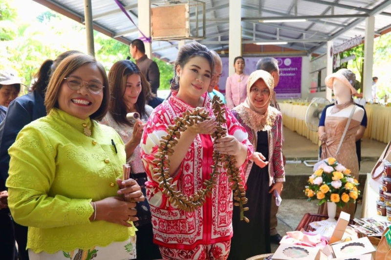 เมื่อวันที่ 20 ม.ค. น.ส.ศุภมาส อิศรภักดี รมว.การอุดมศึกษา วิทยาศาสตร์ วิจัยและนวัตกรรม (อว.) พร้อมด้วย พญ.เพชรดาว โต๊ะมีนา ที่ปรึกษารัฐมนตรีว่าการกระทรวง อว. น.ส.สุณีย์ เลิศเพียรธรรม หัวหน้าผู้ตรวจราชการกระทรวง และคณะผู้บริหาร อว. ลงพื้นที่เยี่ยมชมแหล่งเรียนรู้อาหารและขนมพื้นบ้านพังงาของกลุ่มวิสาหกิจชุมชนและกลุ่มพัฒนาอาชีพ อ.ทับปุด จ.พังงา ก่อนการประชุมคณะรัฐมนตรีอย่างเป็นทางการนอกสถานที่ ณ พื้นที่กลุ่มจังหวัดภาคใต้ฝั่งอันดามัน (กระบี่ ตรัง พังงา ภูเก็ต ระนอง และสตูล) ณ บ้านคลองบ่อแสน อ.ทับปุด จ.พังงา โดยมี นายสุพจน์ รอดเรือง ณ หนองคาย ผู้ว่าราชการจังหวัดพังงา นายกลวัชร ทรัพย์ส่งสุข รองผู้ว่าราชการจังหวัดพังงา น.ส.พวงเพชร ฤทธิพรพันธุ์ ผู้อำนวยการวิทยาลัยชุมชนพังงา นายอรรถพล ไตรศรี สส.จังหวัดพังงา และชาวบ้านกลุ่มวิสาหกิจชุมชนและกลุ่มพัฒนาอาชีพ อ.ทับปุด จ.พังงา ทั้ง 10 กลุ่ม กว่า 300 คน ให้การต้อนรับ