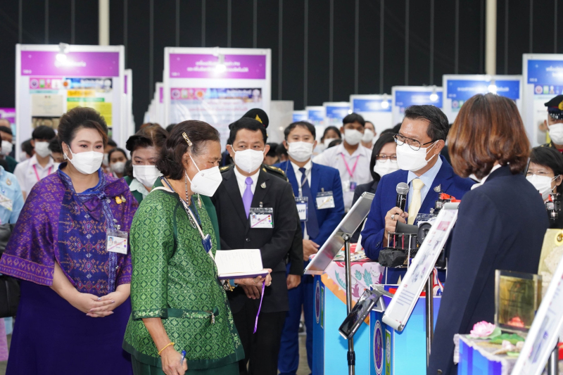 ในการนี้ เสด็จทอดพระเนตรผลงานที่มาจัดแสดง อาทิ นวัตกรรมผลิตภัณฑ์ซักผ้าไหมด้วยนวัตกรรมจากสารสกัดธรรมชาติ จาก มหาวิทยาลัยเทคโนโลยีราชมงคลพระนคร เป็นการพัฒนาผลิตภัณฑ์ซักผ้าไหมด้วยนวัตกรรมจากสารสกัดธรรมชาติ เพื่อประยุกต์ใช้กับ ผลิตภัณฑ์ ผ้าไหมไทย โดยมีแนวคิด “ซักผ้าไหมอย่างไรโดยไม่ต้องใช้น้ำยาซักแห้ง” Easy Care Silk ซึ่งนวัตกรรม นี้จะทำให้การซักผ้าไหมไม่เป็นเรื่องยากอีกต่อไป สกัดจาก น้ำมะพร้าวผลแก่บริสุทธิ์ด้วยวิธีกายภาพ (Physical extraction) และแบบการสกัดเปียก (Wet process) รวมทั้ง น้ำด่างขี้เถ้า ทั้งนี้สารสกัดธรรมชาติเหมาะสมกับผ้าไหมทุกประเภท มีค่าเฉลี่ยสมบัติการคืนตัวต่อการยับ ความกระด้างของผ้าไหม และการทิ้งตัวของผ้าไหม อยู่ในระดับที่ดีมาก โดรนอัจฉริยะ (Smart Drone จาก สมาคมกีฬาเครื่องบินจำลองและวิทยุบังคับ เครื่องมือที่ไม่สามารถมองข้ามได้ในหลายอุตสาหกรรม ด้วยความสามารถในการประยุกต์ใช้ที่หลากหลาย เช่น โดรน เพื่อการขนส่ง ถ่ายภาพ การเกษตร กู้ภัยดับเพลิง ฯลฯ สามารถใช้งานได้ที่หลากหลายและความสามารถที่ตอบโจทย์ได้เป็นอย่างดีทำให้โดรนอัจฉริยะเป็นเครื่องมือที่มีค่าในยุคสมัยนี้ นวัตกรรมอุปกรณ์ช่วยเดินที่มีระบบรองรับน้ำหนักแขน สำหรับผู้ป่วยพาร์กินสันที่มีปัญหาการเดินการทรงตัวและหลังโค้งงอ จาก จุฬาลงกรณ์ สภากาชาดไทย และ คณะแพทยศาสตร์ จุฬาลงกรณ์มหาวิทยาลัย เป็นการออกแบบจากปัญหาของผู้ป่วยที่แท้จริง โดยอิงจากความต้องการของผู้ป่วย และผู้ดูแล ร่วมกับทีมแพทย์ นักกายภาพบำบัด นักออกแบบผลิตภัณฑ์ วิศวกรโรงงาน เจ้าของโรงงานผลิตอุปกรณ์ ทางการแพทย์ ผู้วิจัยจึงออกแบบนวัตกรรมอุปกรณ์ช่วยเดินที่มีระบบรองรับน้ำหนักแขน โดยจะมีการประยุกต์ คุณสมบัติพิเศษของวอล์คเกอร์ช่วยเดินแบบมีล้อ ไม้เท้าค้ำยัน และอุปกรณ์รองรับน้ำหนักแขน มาใช้ในการพัฒนา นวัตกรรม โดยเน้นให้ใช้งานง่าย สามารถนำกลับไปใช้จริงที่บ้านหรือสถานที่ต่าง ๆ เครื่องสกัดเทอร์ปีนและน้ำมันหอมระเหยแบบเคลื่อนที่จากสมุนไพรและดอกไม้ หอมไทยโดยใช้เทคโนโลยีก๊าซตัวทำละลายควบแน่นที่อุณหภูมิและแรงดันต่ำเพื่อยกระดับอุตสาหกรรม การผลิตยาแพทย์แผนไทยและเวชสำอาง จาก มหาวิทยาลัยเทคโนโลยีพระจอมเกล้าธนบุรี เป็นเทคโนโลยีที่ปฏิรูปกรรมวิธีการสกัด ทำให้การสกัดเทอร์ปีน น้ำมันหอมระเหยและสารสำคัญจากสมุนไพร ดอกไม้หอม หรือวัตถุดิบจากสัตว์ กลายเป็นเรื่องง่าย โดยเครื่องสกัดที่พัฒนาขึ้นสามารถเคลื่อนที่ไปสกัดยังแหล่งวัตถุดิบจริง ซึ่งเหมาะกับ โครงสร้างเกษตรกรรมของประเทศท