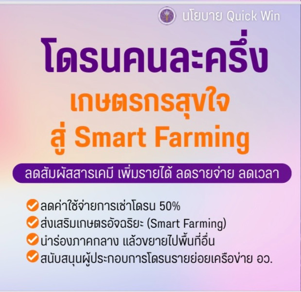 “สุรศักดิ์” รมว.กระทรวง อว.ประกาศนโยบาย Quick Win ช่วย “คนตกงาน - เกษตรกรทั่วประเทศ” เปิดตัวโครงการ “โดรนคนละครึ่ง” อว.ร่วมจ่าย เพิ่มรายได้ ลดรายจ่าย ลดเวลา ลดสารเคมี เดินหน้าสู่เกษตรอัจฉริยะพร้อมเปิด ...