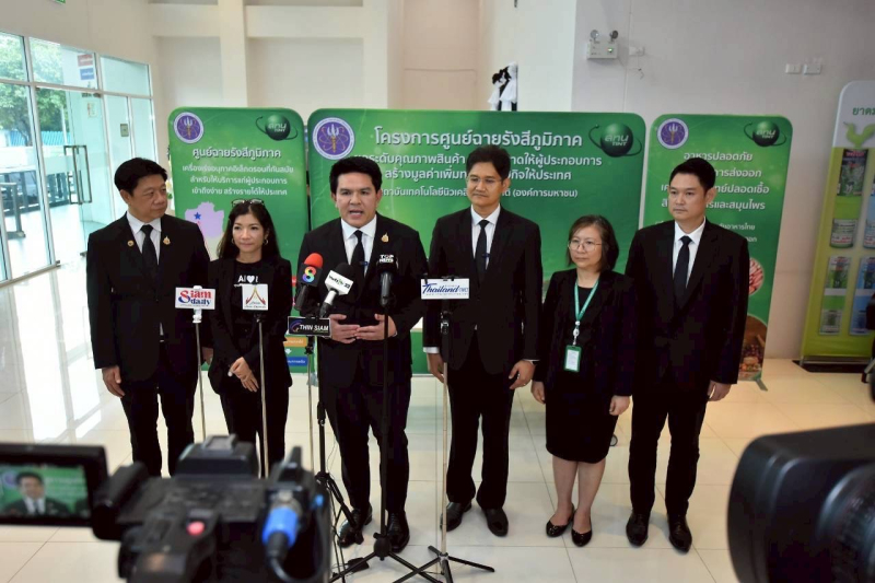 เมื่อวันที่ 10 พ.ย. นายสุรศักดิ์ พันธ์เจริญวรกุล รัฐมนตรีว่าการกระทรวงการอุดมศึกษา วิทยาศาสตร์ วิจัยและนวัตกรรม (อว.) ตรวจเยี่ยมการดำเนินงานศูนย์ฉายรังสี สถาบันเทคโนโลยีนิวเคลียร์แห่งชาติ (องค์การมหาชน) หรือ สทน. พร้อมแถลงข่าวการยกระดับสู่ศูนย์ฉายรังสีครบวงจร และผลการตรวจวิเคราะห์เชื้อยาดมสมุนไพรเพื่อให้ผลิตภัณฑ์ปลอดเชื้อ และการนำลำอิเล็กตรอน (E-Beam) มาให้บริการแก่ผู้ประกอบการสมุนไพรไทย โดยมี โดยมี นางสาวพิมพ์พร ชีวานันท์ เลขานุการ รมว.อว. รศ.ดร.ธวัชชัย อ่อนจันทร์ ผู้อำนวยการสถาบันเทคโนโลยีนิวเคลียร์แห่งชาติ (องค์การมหาชน) ดร.กนกพร บุญศิริชัย รองผู้อำนวยการ สทน. ดร.พรสวรรค์ โรจนพานิช รองผู้อำนวยการ สทน. น.ส.กนกรัชต์ ตียพันธ์ ผศป. และรักษาการรองผู้อำนวยการ สทน. และคณะผู้บริหาร ตลอดจนผู้ประกอบการผลิตภัณฑ์สมุนไพรไทย เข้าร่วม ณ อาคารฉายรังสีอิเล็กตรอน ศูนย์ฉายรังสี เทคโนธานี คลองห้า จังหวัดปทุมธานี