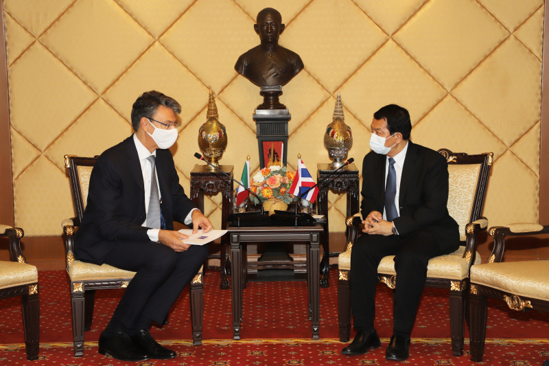 6 พฤษภาคม 2564 เวลาประมาณ 09.30 - 10.30 น. นายโลเรนโซ กาลันตี (Mr. Lorenzo Galanti) เอกอัครราชทูตสาธารณรัฐอิตาลี ประจำประเทศไทย เข้าเยี่ยมคารวะ ศ.ดร.นพ.สิริฤกษ์ ทรงศิวิไล ปลัดกระทรวงการอุดมศึกษา วิทยาศาสตร์ วิจัยและนวัตกรรม (อว.) พร้อมด้วยคณะผู้บริหารกระทรวงฯ ร่วมหารือความร่วมมือทางด้านวิทยาศาสตร์และวิชาการระหว่างไทยกับอิตาลี ณ ห้องพระจอมเกล้าชั้น 4 อาคารพระจอมเกล้า สำนักงานปลัดกระทรวงการอุดมศึกษา วิทยาศาสตร์ วิจัยและนวัตกรรม