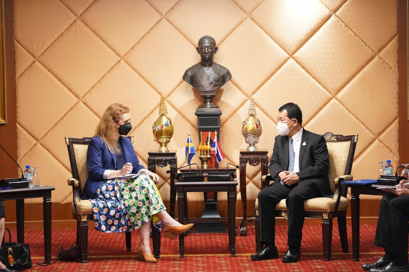 ในโอกาสนี้ ทั้งสองฝ่ายได้หารือเกี่ยวกับการประชุมด้านการพัฒนาที่ยั่งยืนระหว่างไทยกับสวีเดน (Thailand and Sweden Sustainable Development Forum 2022) ซึ่งสถานเอกอัครราชทูตสวีเดนประจำประเทศไทยจะเป็นเจ้าภาพ และมีกำหนดจัดขึ้นในเดือนมิถุนายน 2565 พร้อมทั้งหารือเกี่ยวกับศักยภาพความร่วมมือด้านอุดมศึกษา นวัตกรรม และหนทางแก้ปัญหาสีเขียว เพื่อไปปรับใช้ในการเตรียมการจัดการประชุมดังกล่าว