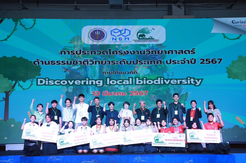 ดร.กรรณิการ์ เฉิน รองผู้อำนวยการองค์การพิพิธภัณฑ์วิทยาศาสตร์แห่งชาติ (อพวช.) หรือ NSMเผยว่า “การประกวดแข่งขันโครงงานวิทยาศาสตร์ด้านธรรมชาติวิทยา ระดับประเทศ ประจำปี 2567 จัดขึ้น เพื่อเปิดเวทีให้เยาวชนได้มีโอกาสแสดงศักยภาพในการสื่อสารและถ่ายทอดเรื่องราวทางวิทยาศาสตร์ผ่านการจัดทำโครงงานวิทยาศาสตร์ด้านธรรมชาติวิทยาและสิ่งแวดล้อม เพื่อเชื่อมโยงความสัมพันธ์ระหว่างการดำรงชีวิตของเยาวชนกับธรรมชาติและสิ่งแวดล้อมรอบตัวในท้องถิ่น พร้อมสร้างแรงบันดาลใจให้เยาวชนคนรุ่นใหม่หันมาสนใจงานด้านวิทยาศาสตร์ธรรมชาติ โดยปีนี้ จัดขึ้นภายใต้แนวคิด “Discovering local biodiversity”ซึ่งในปีนี้มีเยาวชนในระดับชั้นมัธยมศึกษาตอนต้นส่งผลงานเข้าร่วมการแข่งขันกว่า 200 ทีมจากทั่วประเทศ โดยคัดเลือกมาสู่รอบชิงชนะเลิศจำนวน40 ทีม ซึ่งผลปรากฏว่า ทีมโรงเรียนเบญจมเทพอุทิศจังหวัดเพชรบุรี เป็นผู้คว้าชัยในโครงงานเรื่อง “ความหลากหลายและความชุกชุมของสัตว์หน้าดินในบ่อนาเกลือ 5 ประเภท บริเวณตำบลปากทะเล อำเภอบ้านแหลม จังหวัดเพชรบุรี”มีสมาชิกในทีม คือด.ญ.เปรมญาพร เชาว์ดี ด.ญ.ปุญญพัฒน์ ทองสุข และนายสุขธนัท พรมจิต เป็นครูที่ปรึกษาได้รับทุนการศึกษา 10,000 บาท พร้อมโล่รางวัลและประกาศนียบัตร