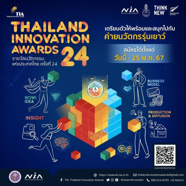 messageImage 1714632723920โครงการ Thailand Innovation Awards 2024 (TIA2024) โดยสำนักงานนวัตกรรมแห่งชาติ (องค์การมหาชน) และ สมาคมวิทยาศาสตร์แห่งประเทศไทยในพระราชูปถัมภ์ และความร่วมมือพิเศษจาก Education New Zealand (ENZ)