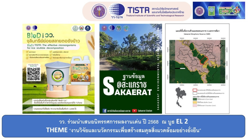 โดยในปีนี้ วว. จะนำผลงานเด่นร่วมจัดนิทรรศการจำนวน 2 ผลงานในธีม “งานวิจัยและนวัตกรรมเพื่อสร้างสมดุลสิ่งแวดล้อมอย่างยั่งยืน” ได้แก่