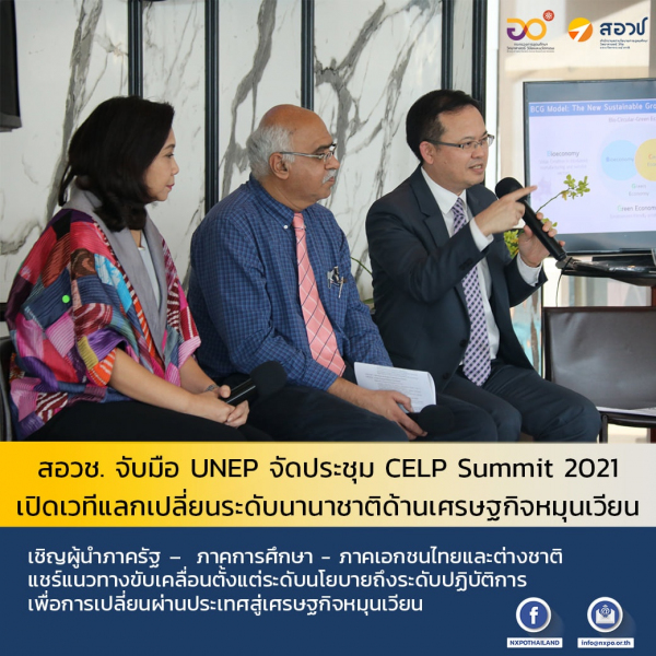 สอวช. จับมือ UNEP จัดประชุม CELP Summit 2021 เปิดเวทีแลกเปลี่ยนระดับนานาชาติด้านเศรษฐกิจหมุนเวียน เชิญผู้นำภาครัฐ – ภาคการศึกษา - ภาคเอกชนไทยและต่างชาติ แชร์แนวทางขับเคลื่อนตั้งแต่ระดับนโยบายถึงระดับปฏิบัติการ เพื่อการเปลี่ยนผ่านประเทศสู่เศรษฐกิจหมุนเวียน
