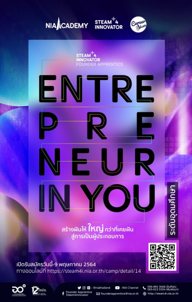 มาร่วมเรียนรู้ ลงมือทำจริงไปพร้อมกันกับ FOUNDER APPRENTICE 2021 โครงการฝึกงานที่จะเปลี่ยนตัวคุณภายใน 11 สัปดาห์ เพราะคุณจะได้เรียนรู้หลักสูตรการสร้างสรรค์นวัตกรรม "STEAM4INNOVATOR" โดยสำนักงานนวัตกรรมแห่งชาติ (องค์การมหาชน) และยังเป็นก้าวแรกที่ได้ทำงานเคียงข้างผู้ประกอบการของบริษัท Start up ชั้นนำกว่า 30 แห่ง เช่น Young Happy, Exzy, Jump AI, Zipevent, MyCloudFufillment, Noburo, Happenn, Health at Home รวมถึงสร้างสรรค์ไอเดีย ทดลองจริง ทำจริง ล้มจริง เจ็บจริง เพิ่มภูมิต้านทานก่อนสู่โลกการทำงานจริง
