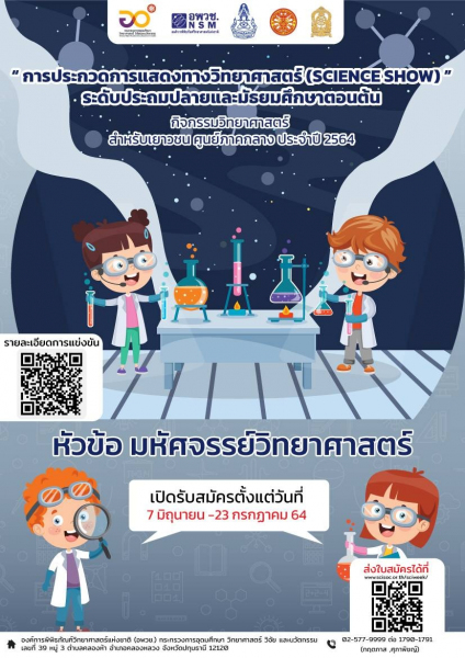 อพวช. ร่วมกับสมาคมวิทยาศาสตร์ในพระบรมราชูปถัมภ์ ขอเชิญชวนเข้าร่วมประกวดการแสดงทางวิทยาศาสตร์ (Science Show) กิจกรรมวิทยาศาสตร์เยาวชน ศูนย์ภาคกลาง ชิงทุนการศึกษากว่า 9,000 บาท