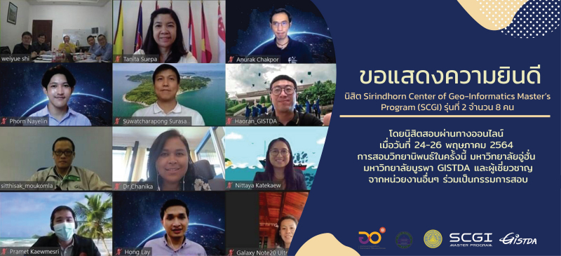 โดยนิสิตสอบผ่านทางออนไลน์ เมื่อวันที่ 24-26 พฤษภาคม 2564 การสอบวิทยานิพนธ์ในครั้งนี้ มหาวิทยาลัยอู่ฮั่น มหาวิทยาลัยบูรพา GISTDA และผู้เชี่ยวชาญจากหน่วยงานอื่นๆ ร่วมเป็นกรรมการสอบ
