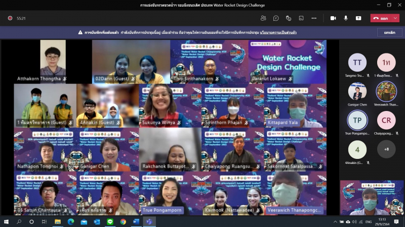 สำหรับการแข่งขันประเภท Water Rocket Design Challenge ได้จัดการแข่งขันรอบชิงชนะเลิศ ในวันที่ 29 กันยายน 2564 โดยมีทีมที่เข้าร่วมแข่งขันทั้งหมด 5 ทีม ผ่านการแข่งขันรูปแบบออนไลน์  โดยได้รับเกียรติจาก ดร.กรรณิการ์ เฉิน รองผู้อำนวยการองค์การพิพิธภัณฑ์วิทยาศาสตร์แห่งชาติ เป็นประธานในพีธีการมอบรางวัล และกล่าวแสดงความยินดีกับผู้เข้าแข่งขัน และคุณผ่องอัมพร ศุภพันธ์ ผู้จัดการฝ่ายองค์กรสัมพันธ์ บริษัท ทรู คอร์ปอเรชั่น จำกัด (มหาชน) ร่วมแสดงความยินดีกับผู้เข้าแข่งขันฯ ในวันดังกล่าว