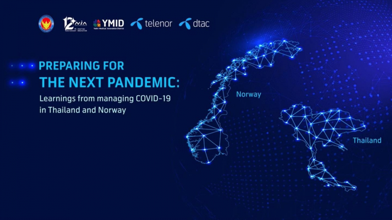 งานสัมมนาผ่านสื่ออิเล็กทรอนิกส์ในหัวข้อ “Preparing for The Next Pandemic: Learning from Managing COVID-19 in Thailand and Norway” ซึ่งจัดขึ้นโดยความร่วมมือระหว่าง NIA สถานเอกอัครราชทูตไทย ณ กรุงออสโล ราชอาณาจักรนอร์เวย์ Telenor Group, DTAC และย่านนวัตกรรมการแพทย์โยธี