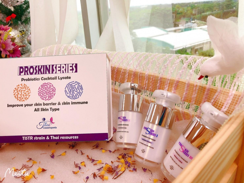 ดร.ธัญชนก เมืองมั่น นักวิจัยอาวุโส ศูนย์เชี่ยวชาญนวัตกรรมผลิตภัณฑ์สมุนไพร วว. กล่าวถึงรายละเอียดของผลิตภัณฑ์ ProSkin Series ว่า เป็นผลิตภัณฑ์เครื่องสำอางที่มีสารออกฤทธิ์จากกระบวนการหมักจุลินทรีย์โพรไบโอติก (probiotic) ในอาหารที่มีคุณสมบัติเป็นพรีไบโอติก (prebiotic) ซึ่งเหมาะสมในการเจริญเติบโตของเชื้อจุลินทรีย์โพรไบโอติก สารสกัดที่ได้จากการหมักหรือโพสไบโอติก (postbiotic) มีคุณสมบัติในการส่งเสริมการทำงานของ “เกราะคุ้มกันผิว” โดยกระตุ้นการทำงานของโครงสร้างผิวหนังที่เรียกว่าไทต์จังชั่น (tight junction) ทำให้ผิวมีความแข็งแรง ป้องกันผิวจากเชื้อโรค มลภาวะ และสารก่อการแพ้ต่างๆ และยังมีคุณสมบัติในการกระตุ้นการสร้างเซราไมด์ (ceramide) เป็นองค์ประกอบที่สำคัญของเยื่อหุ้มเซลล์ (cell membrane) ซึ่งมีหน้าที่ในการปกป้องเซลล์จากสิ่งแปลกปลอมภายนอก และยังมีบทบาทสำคัญที่ช่วยให้ผิวหนังสามารถทำหน้าที่อุ้มน้ำ และลดการสูญเสียของน้ำใต้ผิวหนัง รวมทั้งยังมีคุณสมบัติในการกระตุ้นการสร้างไซโตไคน์ที่มีหน้าที่สร้างภูมิคุ้มกันของผิว คือ interlukin-10 อีกด้วย