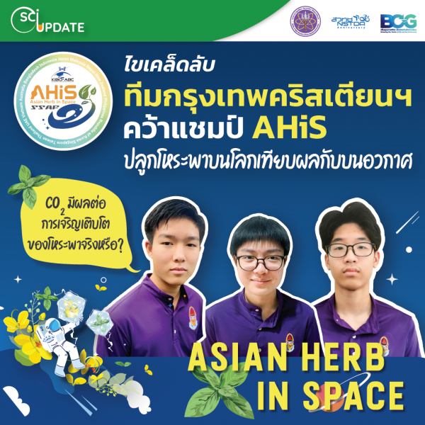 ไม่บ่อยครั้งที่เด็กและเยาวชนไทยจะได้ทำการทดลองบนโลกคู่ขนานกับการทดลองบนอวกาศ แต่ในที่สุดโอกาสดีๆ ก็มาถึงแล้ว เมื่อสำนักงานพัฒนาวิทยาศาสตร์และเทคโนโลยีแห่งชาติ (สวทช.) ร่วมกับองค์การสำรวจอวกาศญี่ปุ่น (Japan Aerospace Agency: JAXA) และหน่วยงานพันธมิตรจัดโครงการ Asian Herb in Space หรือ AHiS ขึ้นเมื่อต้นปี 2564 เพื่อให้เด็กและเยาวชนไทยกว่า 300 ทีมทั่วประเทศได้ทดลองปลูกโหระพา ราชาพืชสมุนไพรบนโลก เพื่อวิเคราะห์เปรียบเทียบผลกับที่นักบินอวกาศปลูกบนสถานีอวกาศนานาชาติ (ISS)