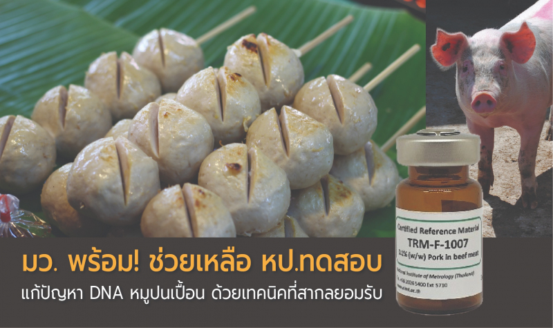 กลุ่มงานวิเคราะห์ชีวภาพ ฝ่ายเคมีและชีวภาพ มว. ให้บริการตรวจวัดการปนเปื้อนของเนื้อหมูด้วยเทคนิค qPCR  และ dPCRการจัดเปรียบเทียบผลการการวัดภายในประเทศ รวมไปถึงการผลิตวัสดุอ้างอิงรับรอง เพื่อใช้ในการตรวจสอบการปนเปื้อนของเนื้อหมูทั้งในกลุ่มของเนื้อสดและกลุ่มอาหารแปรรูป ทั้งในรูปแบบของ DNA solution และ matrix และยังได้มีความร่วมมือกับสถาบันมาตรวิทยาแห่งชาติตุรกี จัดทำการเปรียบเทียบผลการวัดการปนเปื้อนของเนื้อหมูในเนื้อวัวในรูปแบบของอาหารแปรรูปให้กับสถาบันมาตรวิทยาต่างๆ ทั่วโลก (CCQM K86.d/P113.5 Relative quantification of genomic DNA fragments extracted from protein rich matrix) และมีความร่วมมือในโครงการพัฒนาวิธีและผลิตวัสดุอ้างอิงที่ใช้ในการจำแนกเนื้อสัตว์ชนิดต่างๆ เพื่อเพิ่มศักยภาพและความสามารถให้กับห้องปฏิบัติการทดสอบด้านอาหารในประเทศในการตรวจสอบการปนเปื้อนของเนื้อสัตว์ชนิดต่างๆ เป็นการเพิ่มความมั่นใจทั้งผู้บริโภคภายในประเทศและการส่งออกไปต่างประเทศ