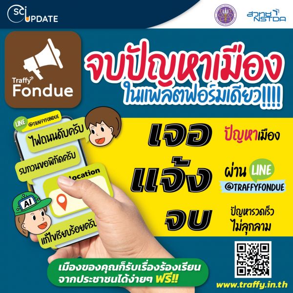 ศูนย์เทคโนโลยีอิเล็กทรอนิกส์และคอมพิวเตอร์แห่งชาติ (เนคเทค) สำนักงานพัฒนาวิทยาศาสตร์และเทคโนโลยีแห่งชาติ (สวทช.) ตระหนักถึงความลำบากของประชาชนในการแจ้งความต้องการหรือปัญหาไปยังหน่วยงานผู้ดูแลพื้นที่ต่างๆ และเข้าใจถึงอุปสรรคในการทำงานของเจ้าหน้าที่ในการสำรวจปัญหาเมือง จึงได้พัฒนาแพลตฟอร์ม Traffy Fondue เพื่ออำนวยความสะดวกในการรับแจ้งปัญหา พร้อมทั้งส่งตรงถึง ‘หน่วยงานผู้รับผิดชอบ’ ช่วยให้เจ้าหน้าที่แก้ปัญหาได้รวดเร็ว ปัญหาไม่ลุกลาม ตรงตามความต้องการของประชาชน ที่สำคัญตรวจสอบได้