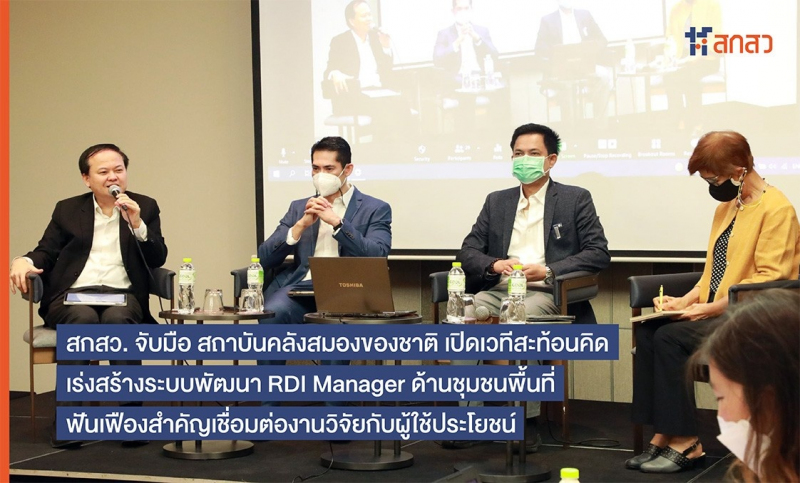 สกสว. ร่วมกับ สถาบันคลังสมองของชาติ จัดประชุมถกประเด็น ระดมความเห็น (ร่าง) ระบบพัฒนาผู้จัดการงานวิจัย พัฒนาและนวัตกรรมด้านชุมชนและพื้นที่ เร่งสร้างความเข้มแข็งของ RDI Manager บุคลากรการบริหารจัดการงานวิจัยและนวัตกรรม ฟันเฟืองข้อต่อสำคัญในการผลักดันการผลิตงานวิจัย และนวัตกรรมของประเทศให้มีศักยภาพ
