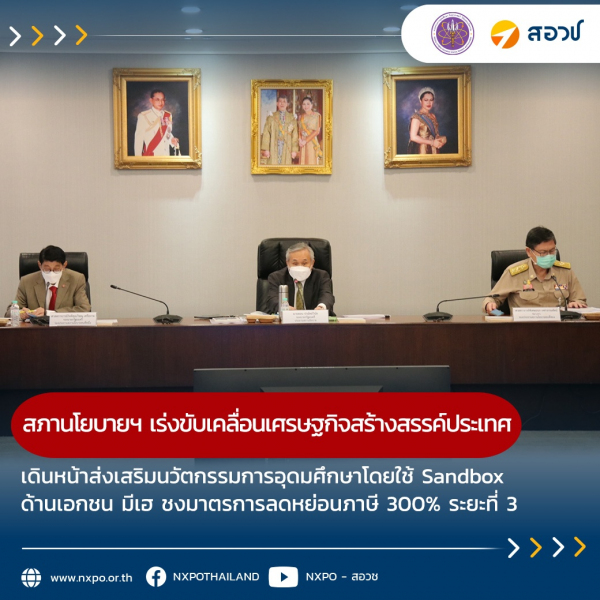 นายดอน ปรมัตถ์วินัย รองนายกรัฐมนตรี เปิดเผยว่า การดำเนินงานของสภานโยบายฯ ได้มีส่วนสนับสนุนการขับเคลื่อนการพัฒนาประเทศอย่างชัดเจน ทั้งการเกิดขึ้นของพระราชบัญญัติส่งเสริมการใช้ประโยชน์ผลงานวิจัยและนวัตกรรม พ.ศ. 2564 การจัดตั้งกองทุนเพื่อพัฒนาการอุดมศึกษา รวมถึงการผลักดันแนวทางการจัดการศึกษาที่แตกต่างจากมาตรฐานการอุดมศึกษา หรือ Higher Education Sandbox ที่เปิดโอกาสให้สถาบันอุดมศึกษาได้พัฒนานวัตกรรมการจัดการศึกษารูปแบบใหม่ การประชุมครั้งนี้ สภานโยบายฯ จึงมีมติมอบหมายให้คณะกรรมการพิเศษเฉพาะเรื่อง ด้านการส่งเสริมนวัตกรรมการอุดมศึกษา พิจารณากลั่นกรองเรื่องการจัดการศึกษาที่แตกต่างจากมาตรฐานการอุดมศึกษาตามที่คณะรัฐมนตรีมอบหมาย ทั้งนี้ รองนายกรัฐมนตรีได้เน้นย้ำว่า การดำเนินงานของสภานโยบายฯ นอกจากจะเน้นการพัฒนาด้านวิทยาศาสตร์ เทคโนโลยี และนวัตกรรมแล้ว ยังให้ความสำคัญกับการอบรมบ่มเพาะและพัฒนา “คน” โดยไม่ได้มุ่งพัฒนาในเชิงวิชาการเท่านั้น แต่ให้ความสำคัญกับการเรียนรู้ตลอดกระบวนการ สามารถนำไปต่อยอด และนำไปใช้ตอบโจทย์ประเทศและประชาชนได้ รวมทั้งเน้นจริยธรรมและการยึดหลักธรรมาภิบาลด้วย