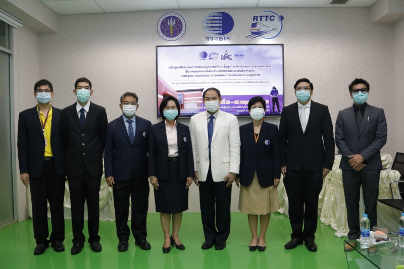 รศ.ดร.สมหมาย ผิวสอาด ประธานคณะกรรมการอธิการบดีมหาวิทยาลัยเทคโนโลยีราชมงคล เป็นประธานเปิดการอบรมหลักสูตรการพัฒนาทักษะบุคลากรขั้นสูงทางวิศวกรรมระบบขนส่งทางราง เรื่อง หมอนคอนกรีตในงานวิศวกรรมระบบขนส่งทางราง : มาตรฐานการออกแบบ การทดสอบและการผลิตและระบบคุณภาพ ศ. (วิจัย) ดร.ชุติมา เอี่ยมโชติชวลิต ผู้ว่าการสถาบันวิจัยวิทยาศาสตร์และเทคโนโลยีแห่งประเทศไทย (วว.) กระทรวงการอุดมศึกษา วิทยาศาสตร์ วิจัยและนวัตกรรม (อว.) กล่าวต้อนรับผู้เข้ารับการอบรม ซึ่ง วว. โดย ศูนย์ทดสอบมาตรฐานระบบขนส่งทาง (ศทร.) จัดขึ้นระหว่างวันที่ 23-28 พฤษภาคม 2565 ณ อาคาร 2 ศทร. วว. เทคโนธานี โอกาสนี้ ดร.พัชทรา มณีสินธุ์ รองผู้ว่าการบริการอุตสาหกรรม วว. ร่วมเป็นเกียรติด้วย ทั้งนี้เนื้อหาการอบรมผ่านการถ่ายทอดความรู้โดยวิทยากรผู้เชี่ยวชาญทั้งจากภายในประเทศและต่างประเทศ ซึ่งมีประโยชน์ต่อการพัฒนาระบบขนส่งทางราง อาทิ การลงทุนโครงการด้านระบบรางของประเทศไทย การออกแบบหมอนคอนกรีต การวิเคราะห์ปัญหาวิศวกรรมงานทางด้วยโปรแกรม Finite Element เทคโนโลยีการผลิตหมอนคอนกรีต เจาะลึกมาตรฐานการทดสอบหมอนคอนกรีต เครื่องมืออุปกรณ์ขั้นต้นและข้อควรระวังในการทดสอบหมอนคอนกรีตตามมาตรฐานสากล ระบบคุณภาพ ISO/IEC17025 สำหรับห้องปฏิบัติการ แนวทางการจัดทำระบบคุณภาพสำหรับห้องปฏิบัติการทดสอบหมอนคอนกรีต สาธิตการทดสอบหมอนคอนกรีตและชิ้นส่วนงานทางในห้องปฏิบัติการ การฝึกปฏิบัติการทดสอบหมอนคอนกรีต เป็นต้น นอกจากนี้ผู้เข้ารับการอบรมยังได้เยี่ยมชมเทคโนโลยีการผลิต/การติดตั้งหมอนคอนกรีตและงานทาง โครงการรถไฟรางคู่ สถานีชุมทางบ้านหนองปลาดุก อ.บ้านโป่ง จ.ราชบุรี พร้อมรับมอบประกาศนียบัตรผ่านการอบรมหลักสูตรฯ
