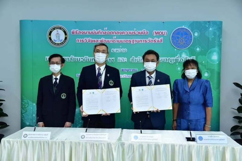 (26 พฤษภาคม 2565) กระทรวงการอุดมศึกษา วิทยาศาสตร์ วิจัยและนวัตกรรม (อว.) โดยสำนักงานปรมาณูเพื่อสันติ (ปส.) และมหาวิทยาลัยนวมินทราธิราช ลงนามบันทึกความร่วมมือทางวิชาการเพื่อการวิจัยและพัฒนาด้านมาตรฐานการวัดรังสี เพื่อวิจัยและพัฒนาด้านมาตรฐานการวัดรังสีทางการแพทย์ หวังยกระดับและเพิ่มขีดความสามารถ ด้านบุคลากร เครื่องมือ และเทคโนโลยีด้านนิวเคลียร์และรังสีให้เท่าเทียมสากล พร้อมผลักดันและขับเคลื่อนงานวิจัยสู่การใช้ประโยชน์ เพื่อสนับสนุนการเป็นศูนย์กลางด้านการแพทย์ต่อไป